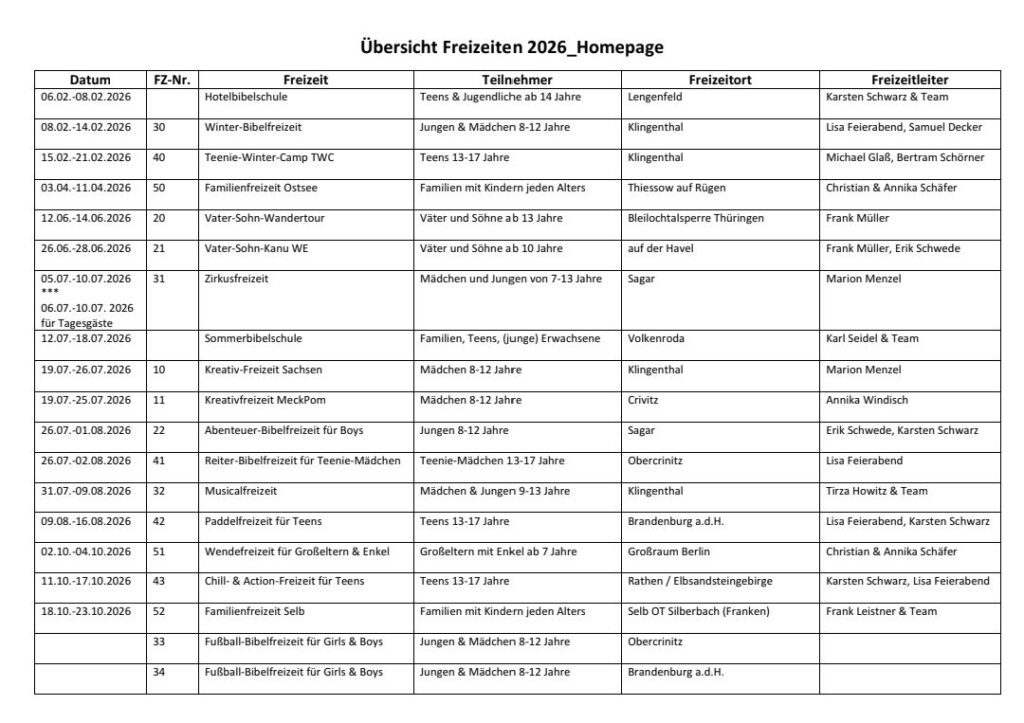 In den nächsten Tagen werden die Freizeiten und Events auf der Homepage aktualisiert.